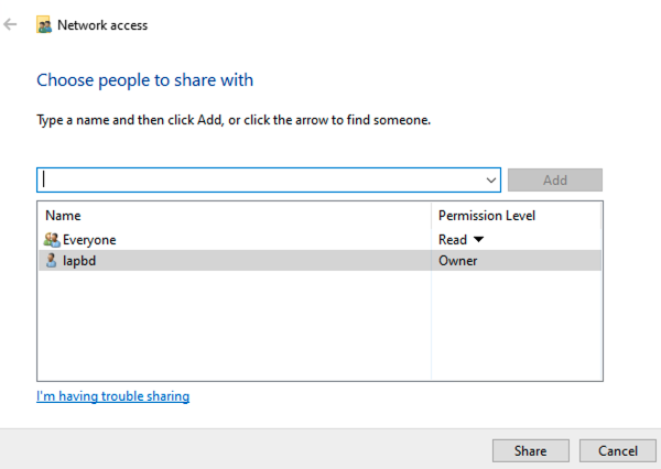- Cấp quyền read cho everyone trong folder mà mình share